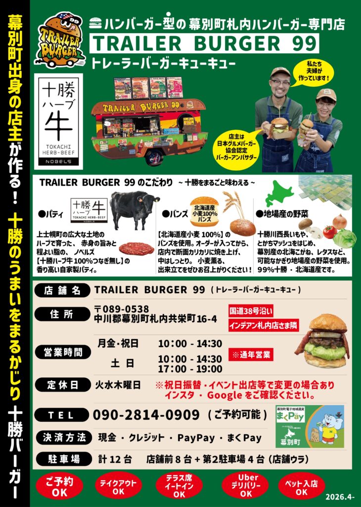 【TRAILER BURGER 99】が誕生しました。