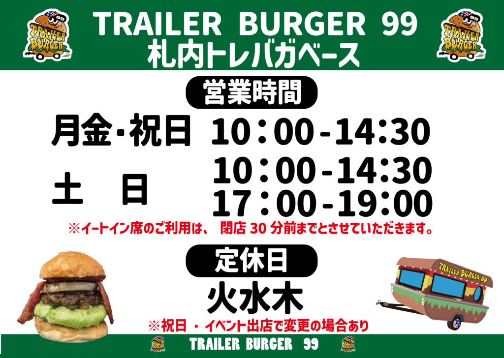 【TRAILER BURGER 99 BASE】OPEN!!